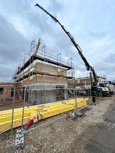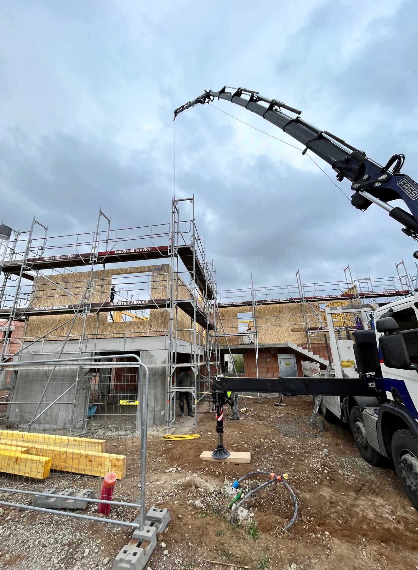 L’installation des murs en ossature bois est en cours sur le chantier de notre futur programme LILI GARDEN ! 🚚