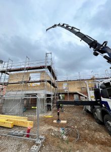 L’installation des murs en ossature bois est en cours sur le chantier de notre futur programme LILI GARDEN !